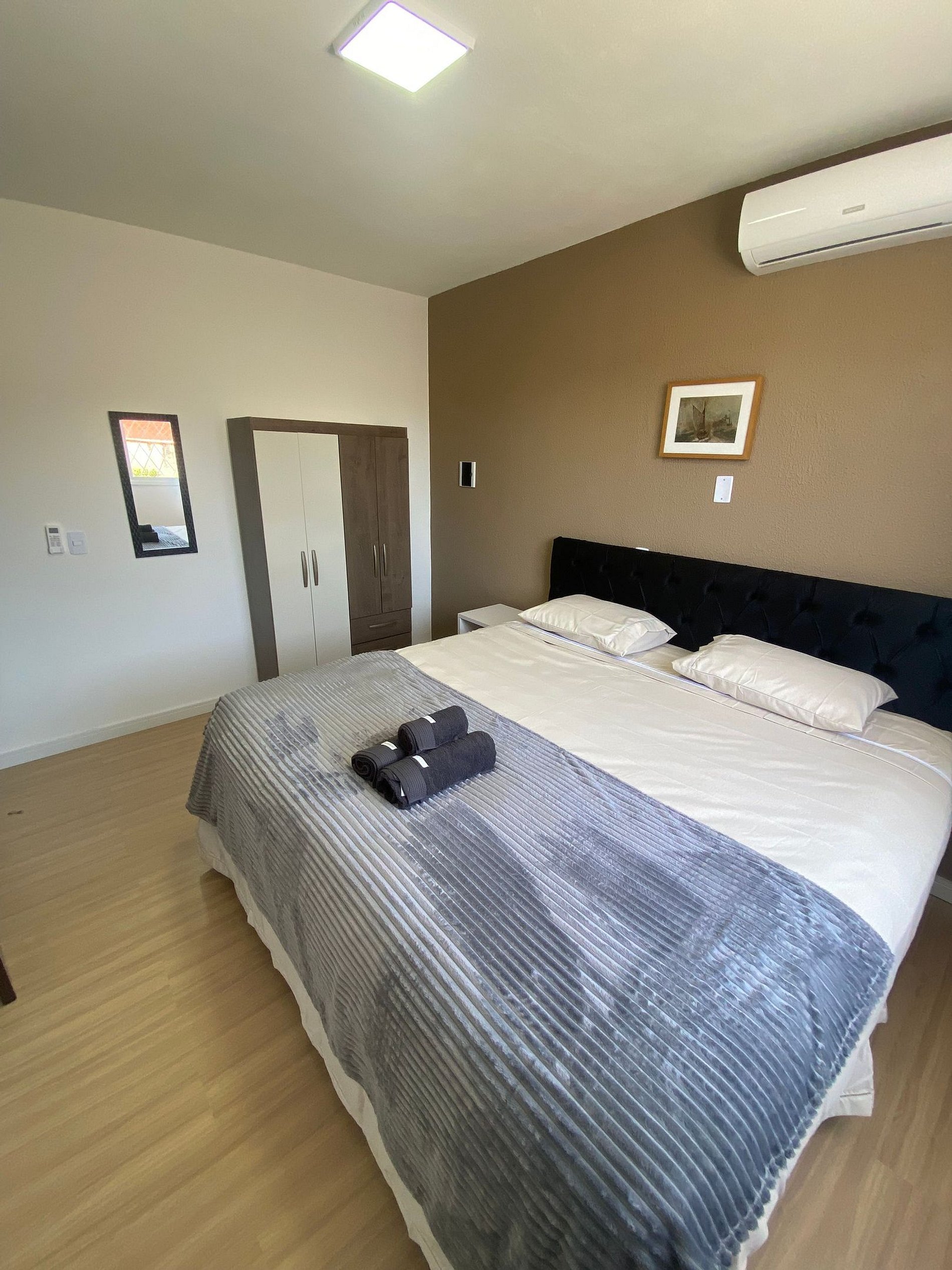Apartamento 02 dorms em edifício residencial familiar e seguro. SELF CHECK IN/OUT - NÃO COMPARTILHADO * Não é permitido trazer pessoas (que não estejam previstas na reserva) para o apartamento. Churrasq na sacada, cozinha c forno e fogão, microondas, split na sala e quarto, geladeira, TV Smart 32" e internet WI-FI. Fornecemos sabonete, roupa de cama e banho, e cobertor. Cama Casal e Super King. Rua tranquila sem saída, próx ao Centro. Câmeras de vigilância acesso c tag. Vaga coberta.