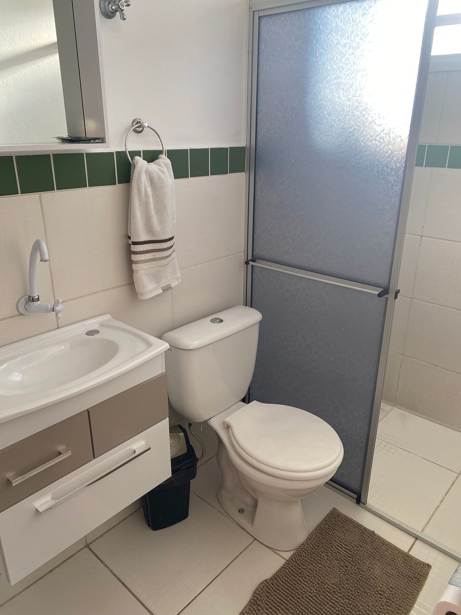 Fornecemos roupa de cama, toalhas de banho e rosto, sabonetes novos. Possui cozinha utilitária com fogão 4 bocas, microondas e geladeira. Talheres, pratos, copos, panelas, chaleira e cafeteira; estão entre os itens disponibilizados. Além disso fornecemos sal, café em pó, açúcar, azeite, etc.
