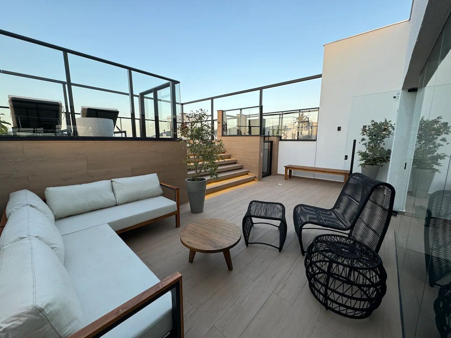 Acesso feito através de chave eletrônica via aplicativo. O link é enviado especificamente para o hóspede que acessa pelo celular. Feito o primeiro cadastro, o acesso é automático através de reconhecimento facial em todas as portas. Forneceremos controle para acesso à garagem.