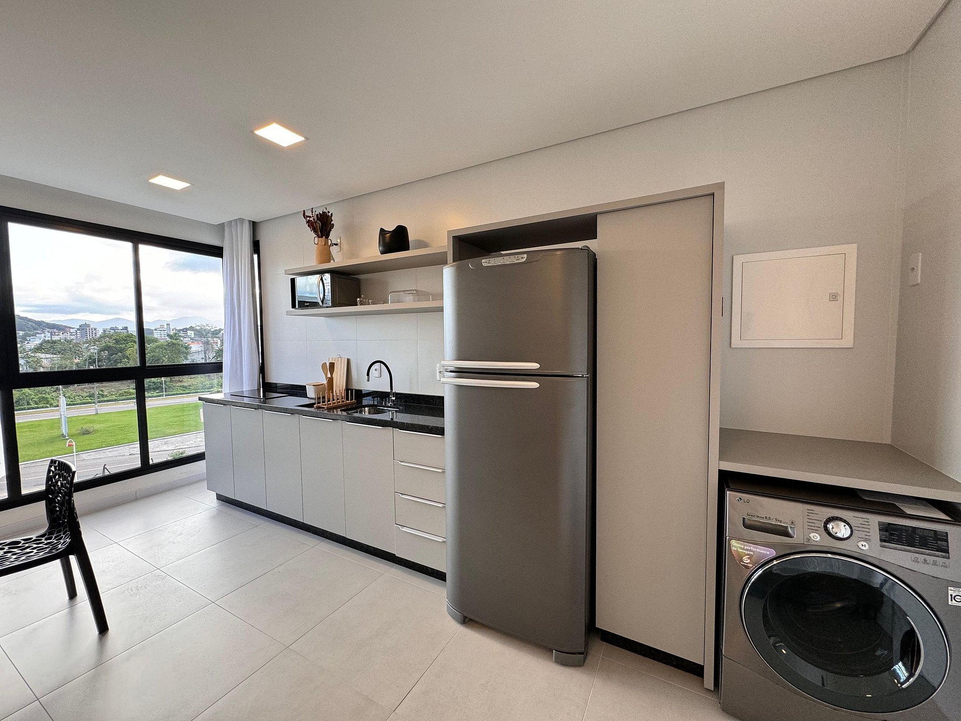 Novíssimo condomínio! Hospede-se com requinte e sofisticação numa das melhores localizações de Joinville. Studio moderno conta com os principais e novos eletros necessários à sua perfeita estadia. Cozinha equipada com todos os acessórios. Roupa de cama e toalhas padrão hotelaria de luxo. Louças e talheres finos escolhidos para encantar.