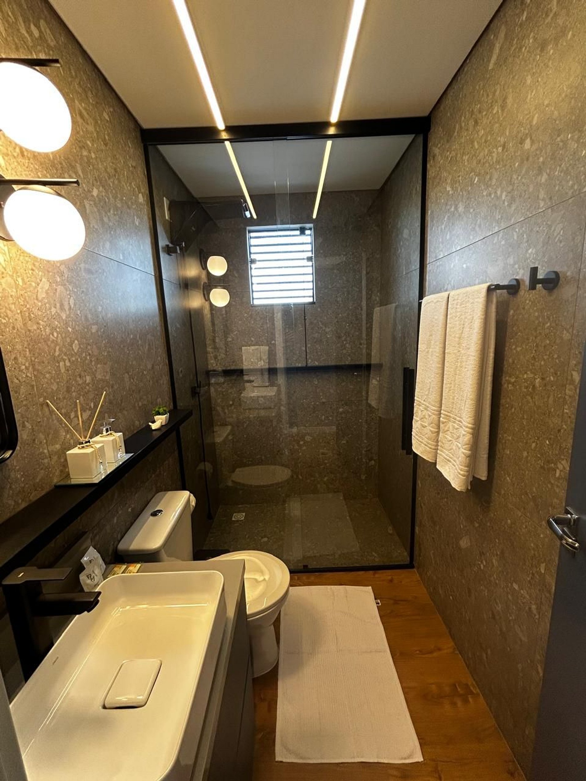 Acesso através de aplicativo com face ID. Fácil e moderno, flexibiliza os horários para o hóspede. O acesso ao apartamento é feito com fechadura eletrônica com senha fornecida pelo anfitrião.