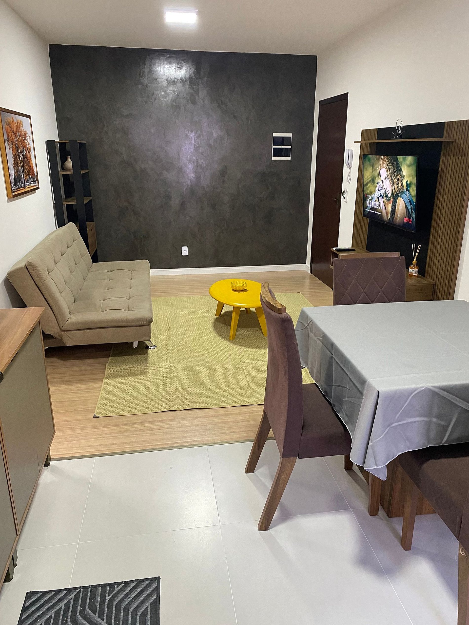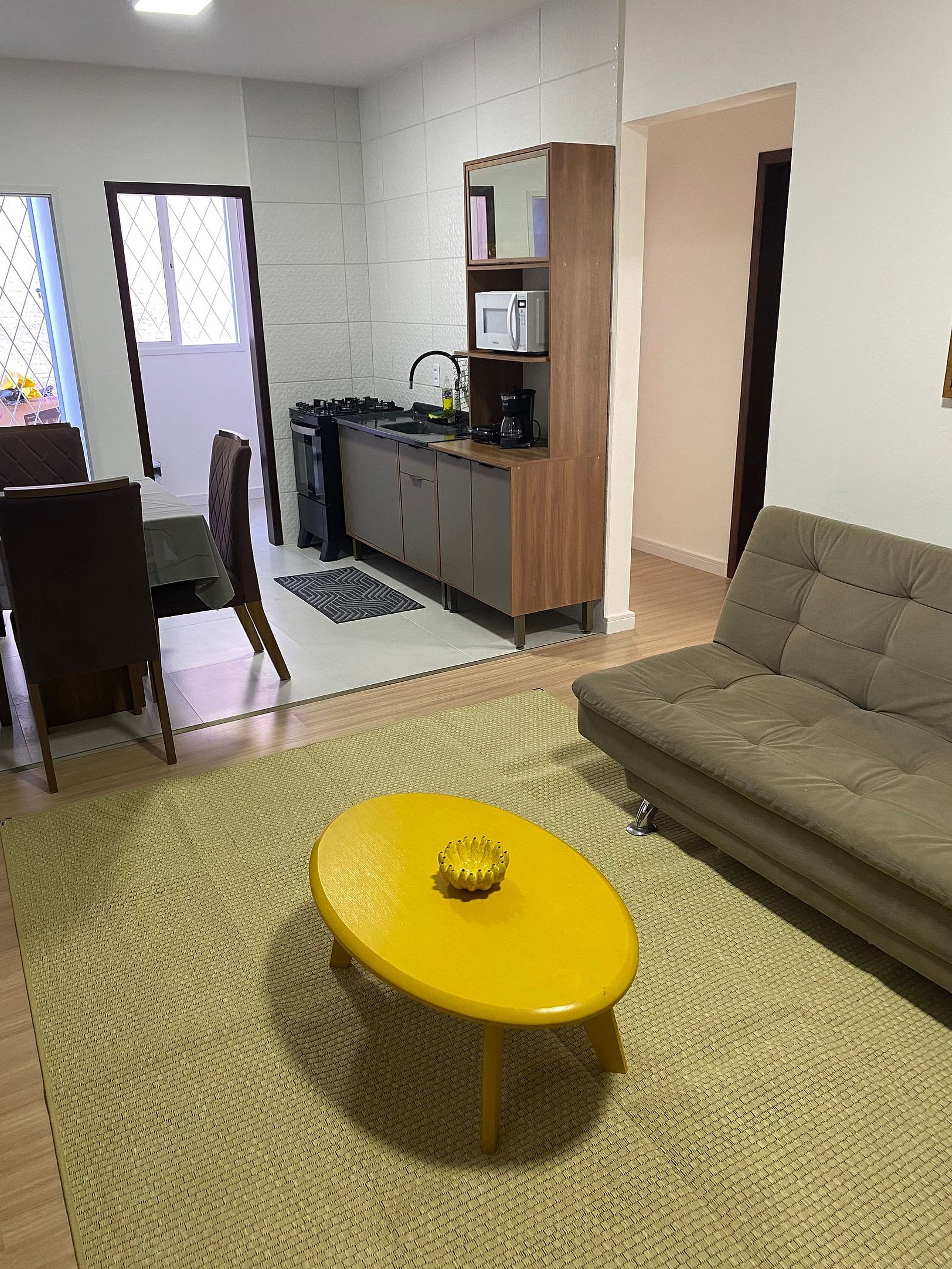 Apartamento 02 dorms em edifício residencial familiar e seguro. SELF CHECK IN/OUT - NÃO COMPARTILHADO * Consultar host para trazer visitas não previstas na reserva. Churrasq na sacada, cozinha c forno e fogão, microondas, split na sala e quarto, geladeira, TV 43" Smart e internet WI-FI. Fornecemos sabonete, roupa de cama e banho, e cobertor. Cama Queen e Super King. Localizado em rua tranquila sem saída, próx ao Centro. Câmeras de vigilância acesso c tag. Vaga coberta.