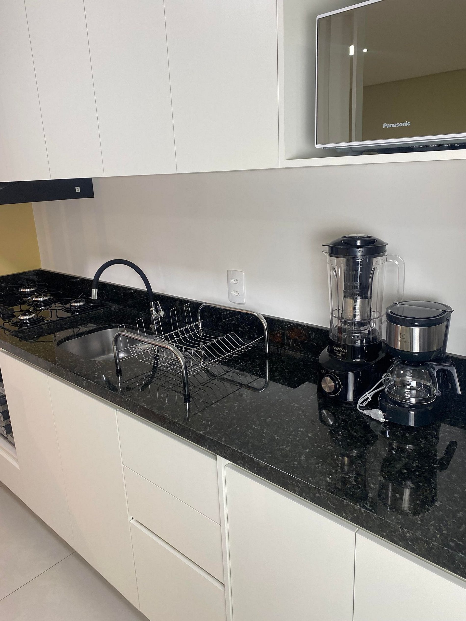 Wi-fi potente. Cozinha completa equipada com panelas e utensílios Tramontina, pratos Porto Brasil, copos e taças de vinho. Cafeteira e liquidificador.