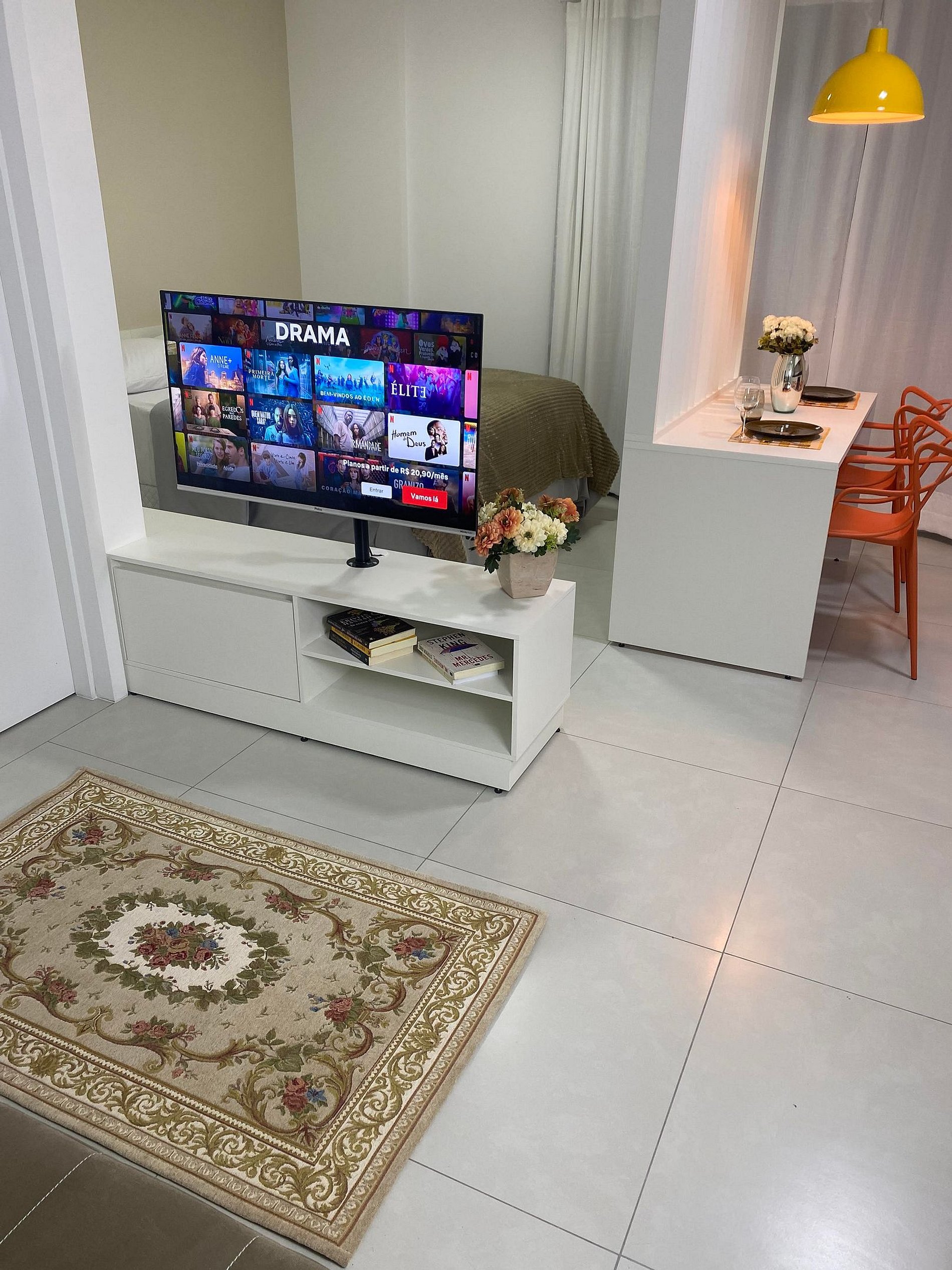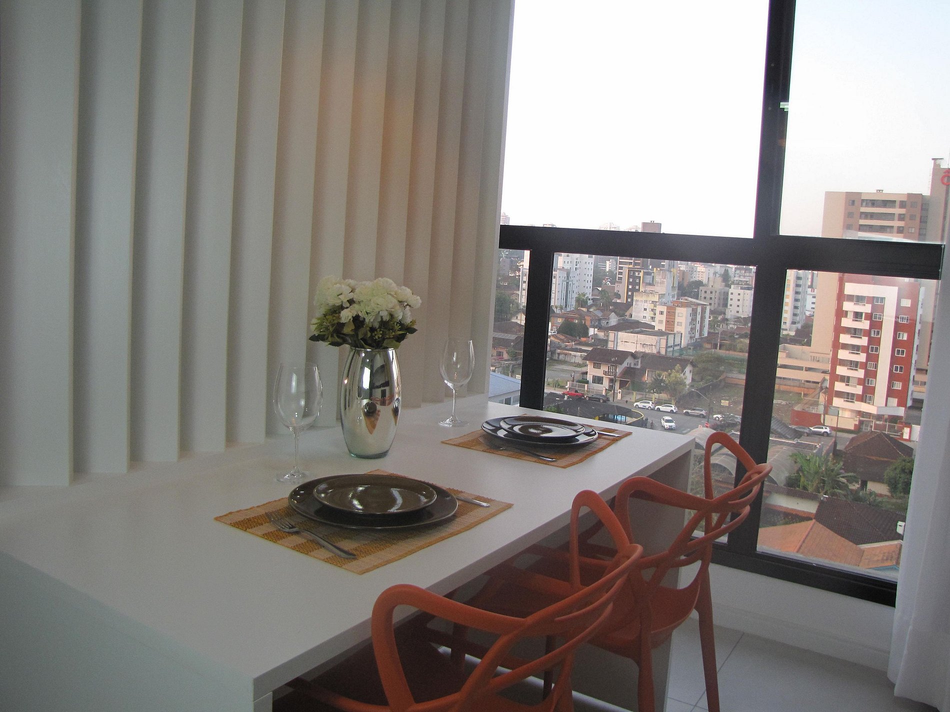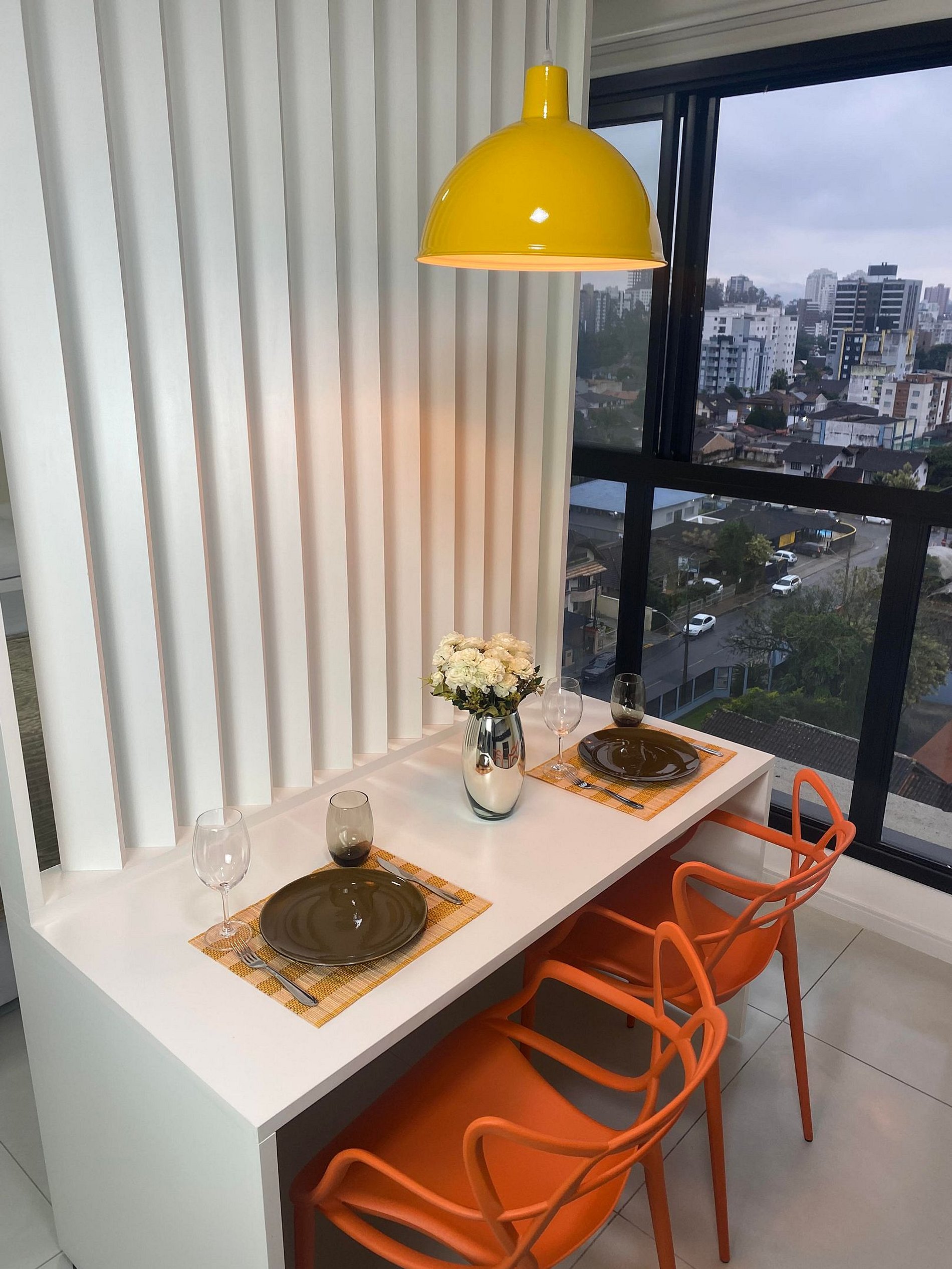 Studio temático "Flowers", representado Joinville - a cidade das flores. Localizado em edifício residencial de alto padrão. Condomínio com piscina e academia no rooftop para uso dos hóspedes, com linda vista da cidade. Studio finamente mobiliado para maior conforto. Sistema self check in/out, permite comodidade e liberdade de horário para os hóspedes.